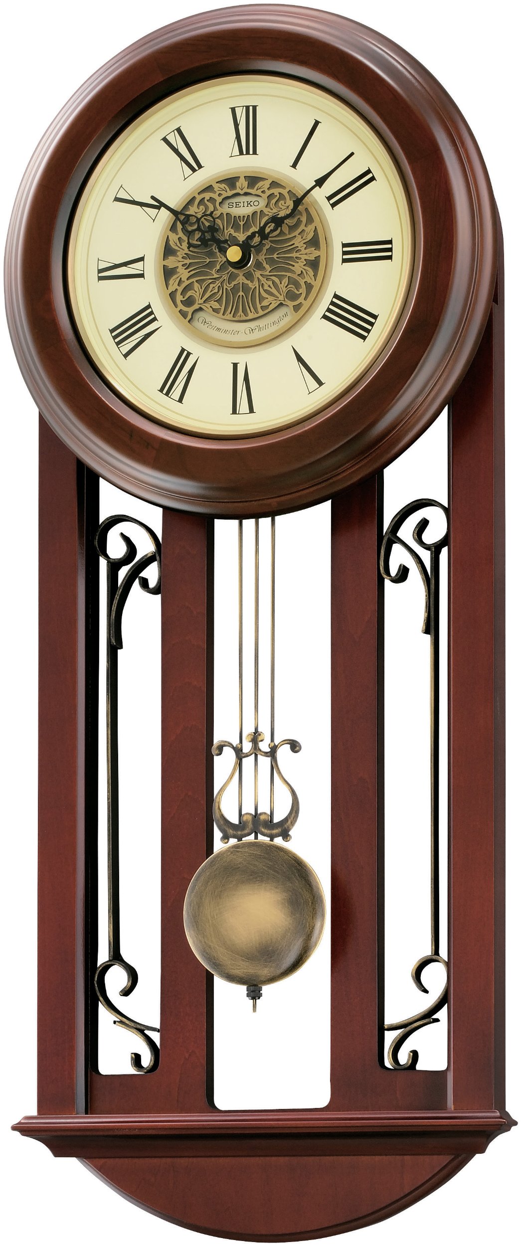 Your Seiko Wall Pendulum Clock offers two classic chime melodies: Westminster and Whittington. A selector switch is located on the back or side of the clock mechanism.