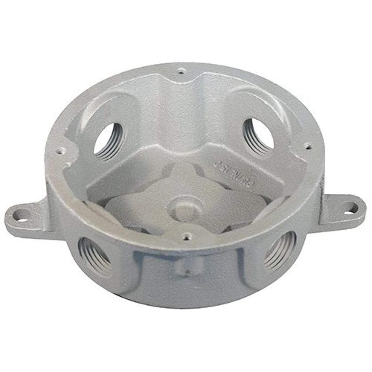 図1: Appleton JBX100L UNILET Round Outlet Box. This image shows the robust construction of the round outlet box, typically made from malleable iron, designed for durability in various environments.