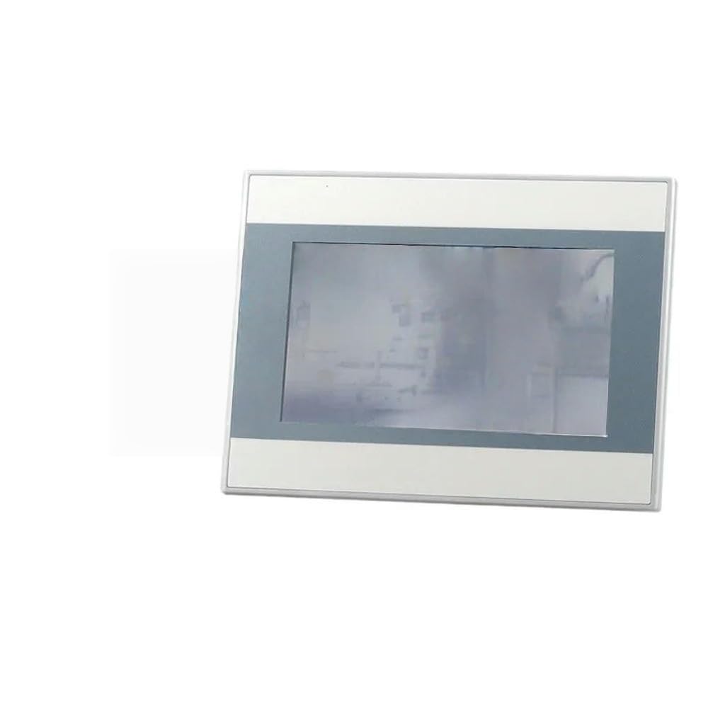 この画像は正面を示しています view of the AMX-MT070IE Touch Panel, highlighting its screen and overall design. The panel is designed for industrial applications, featuring a robust build suitable for various PLC systems.